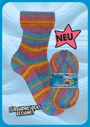 Opal Fine Merino är ett slitstarkt 4-trådigt garn av 75 % fin merinoull (superwash) och 25 % polyamid, i vackra självrandande färgkombinationer.                                                                    Ullen är mulesing-fri och superwash-behandlingen är både klorfri och vattenbesparande, vilket innebär en mer miljövänlig process med färre kemikalier.