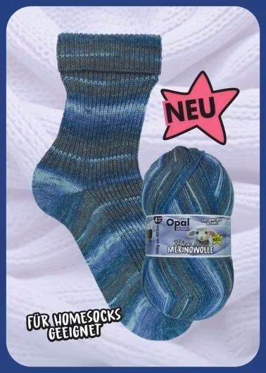 Opal Fine Merino är ett slitstarkt 4-trådigt garn av 75 % fin merinoull (superwash) och 25 % polyamid, i vackra självrandande färgkombinationer.                                                                    Ullen är mulesing-fri och superwash-behandlingen är både klorfri och vattenbesparande, vilket innebär en mer miljövänlig process med färre kemikalier.