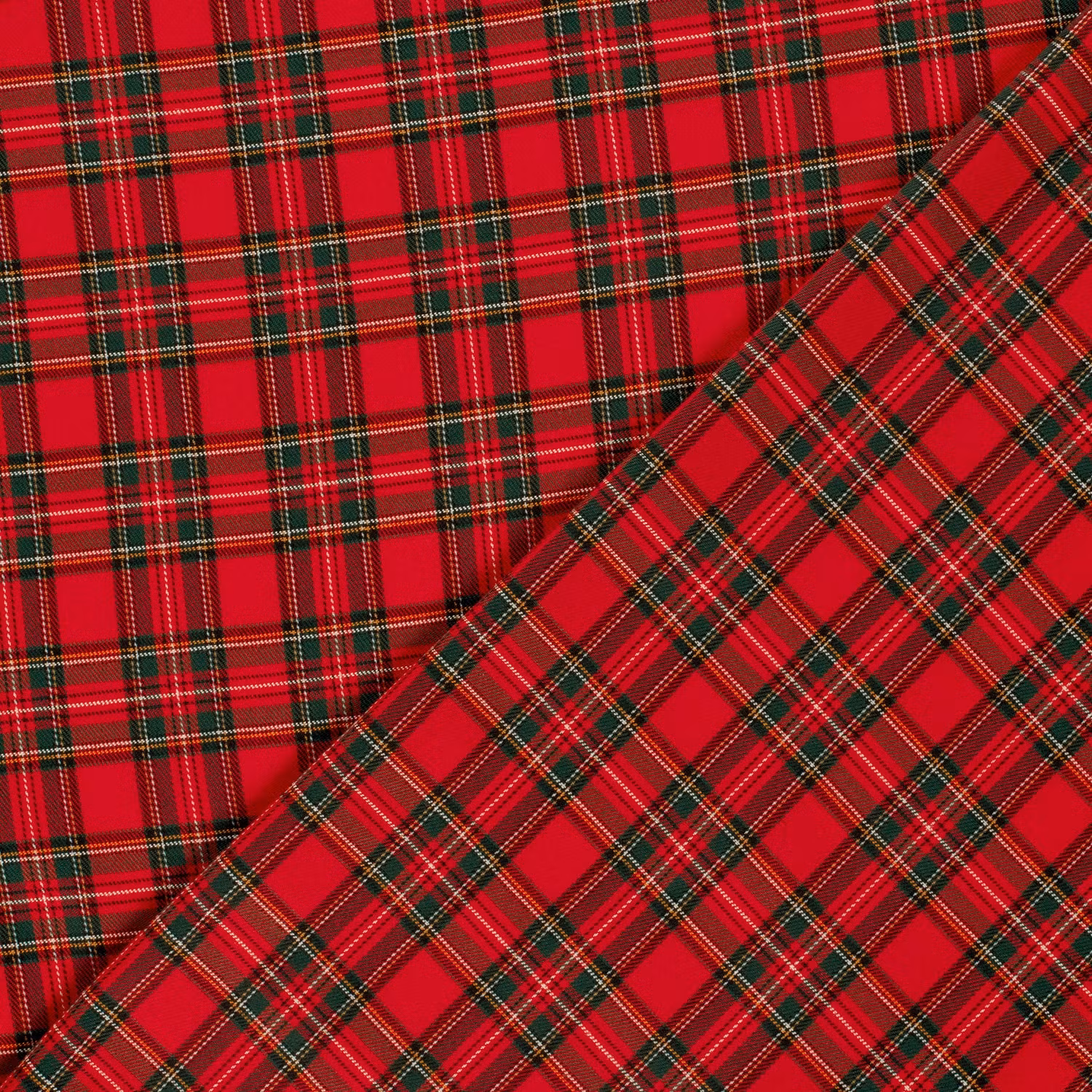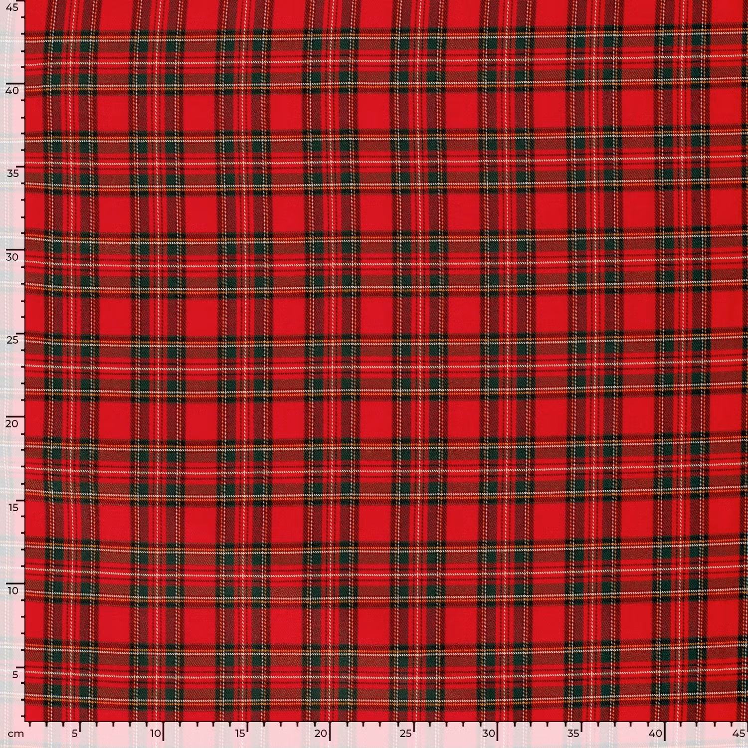Ett stilfullt rödrutigt gabardintyg med lite stretch som är perfekt för dig som vill skapa plagg med både elegans och komfort.